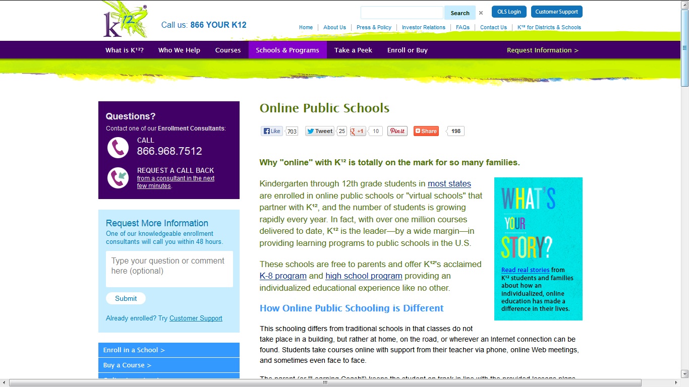 يقدم هذا الموقع أيضا مناهج إلكترونية مجانية تخدم التعليم الأساسي ودون الجامعي K12، وهو يقدم بشكل رسمي في 33 ولاية في الولايات المتحدة الأمريكية.