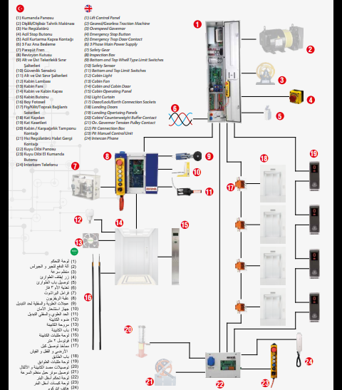 لكى يمكننا فهم لوحه تحكم المصعد ينبغى معرفه مكونات المصعد وكيف يتم الربط بينها لكى يعمل المصعد وسنبدأ بعرض اهم الوظائف الكهربية فى المصاعد بشكل مبسط