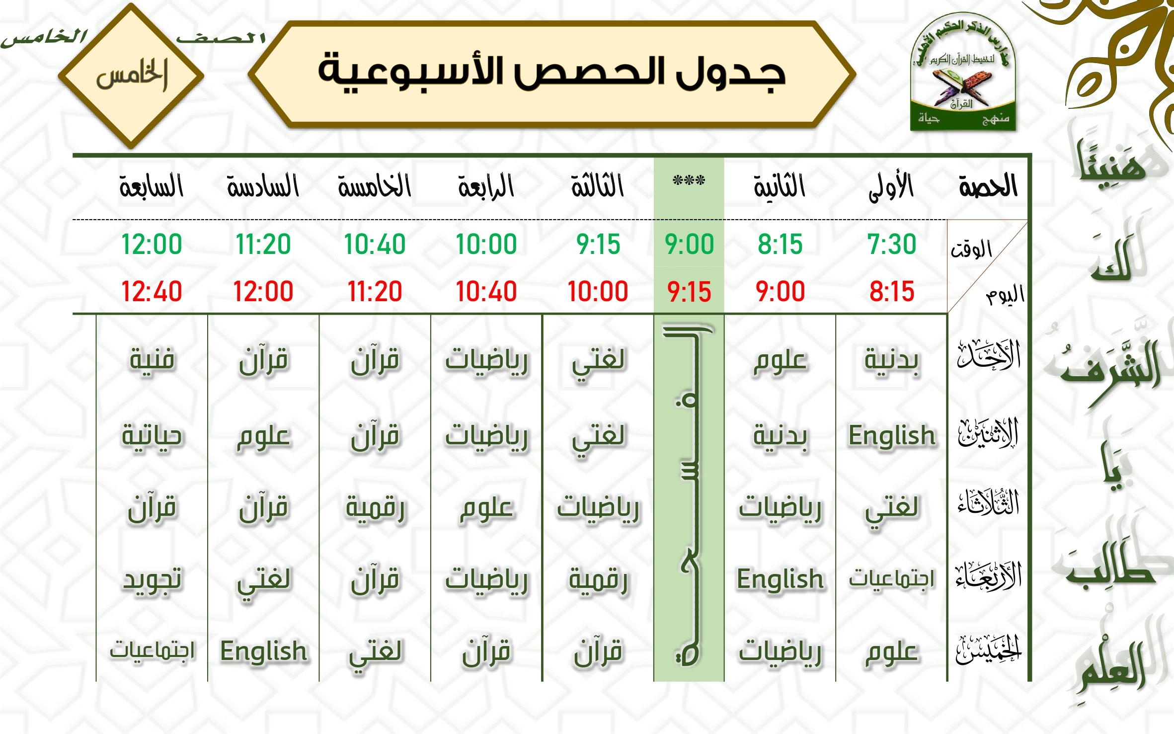 جدول الحصص اليومي