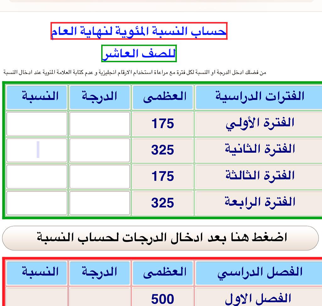 الآن يمكن ان تضع المجموع أوالنسبة لحساب المعدل التراكمي وحساب النسب لطلبة الثانوي من خلال