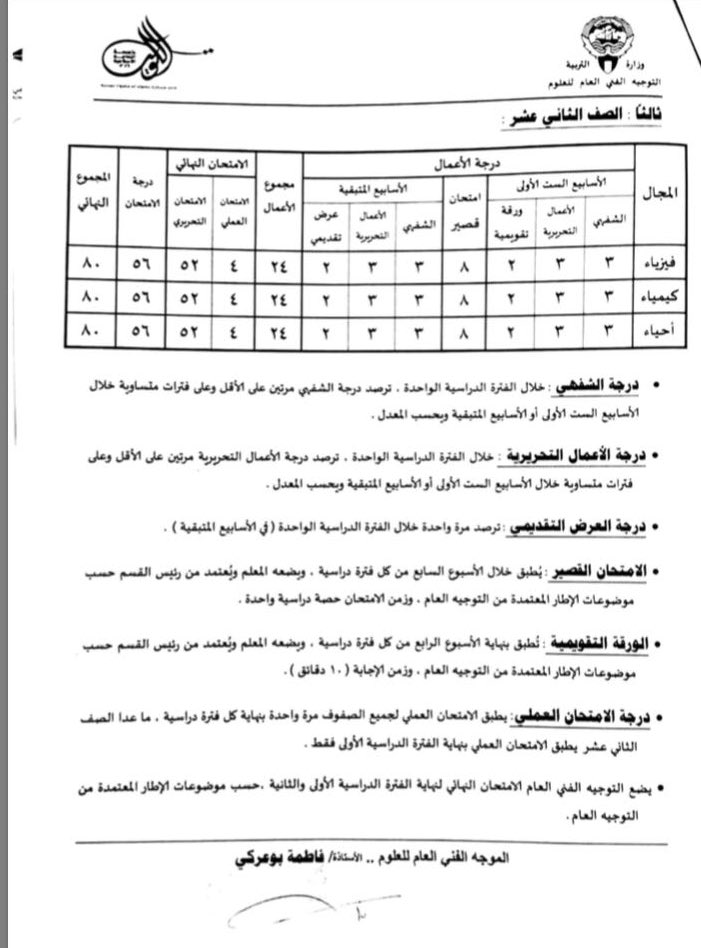 آلية تقويم مجالات العلوم للمرحلة الثانوية للعام 2017/2016