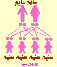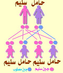 لو تزوج اثنان كلاهما سليم(اي غير مصاب او حامل للمرض) ،فانه بمشيئة الله يكون جميع أطفال هذه الاسرة سليمة و غير مصابة (اي 100% سليم).
