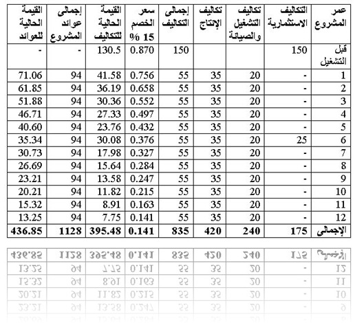 ويكون المشروع مجدى اقتصاديا إذا كان صافى القيمة الحالية موجبا .