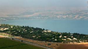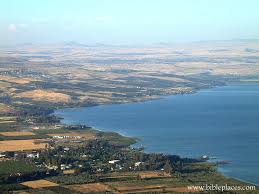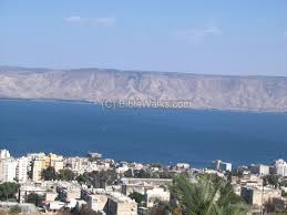 على الشاطئ الجنوبي الغربي من البحيرة التي تحمل اسمها - بحيرة طبريا. تبعد عنالقدس حوالي 198 كم إلى الشمال الشرقي.