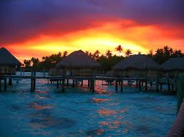 Bora Bora, French Polynesia جزيرة بورا بورا , جزيرة من جزر ليوارد في بولينيزيا الفرنسية التابعة لفرنسا في المحيط الهادي.