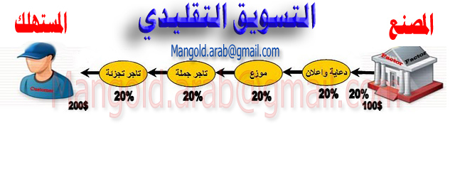 أولاً : ما هو التسويق الشبكي والفرق بينه وبين التسويق العادي ؟سؤال يتبادر إلى ذهن الكثيرين من الناس وحتى تكون الآمور واضحة دعونا نتحدث قليلا عن الطريقة التقليدية في التسويق (التسويق العادي أو التقليدي) حيث أن الطريقة التقليدية فى التسويق تعتمد علي الشكل التالي :