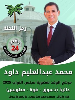 أدعو جميع مَن لهم صوت إنتخابى مِن أهالى مركز،ومدينة دسوق بأن يتحدوا،ويقفوا صفًا واحدًا،ويعطوا أصواتهم لابناء مركز دسوق،بالجولة الثانية،للمرحلة الثانية،بإنتخابات مجلس النواب2025م،مِن أجل الخير لجميع أهالى مركز،ومدينة دسوق،فوجود عضو على الأقل مِن مركز دسوق بمجلس النواب،يسلط الضوء على مشاكل،وإحتياجات أهالى مركز،ومدينة دسوق،وحل تلك المشاكل !