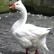 إوز سباستوبول Sebastopol Geese موطنة الاصلي انجلترا ويتميز بالعين الزرقاء اما لون المنقار والارجل برتقالي ولون الريش ناصع البياض