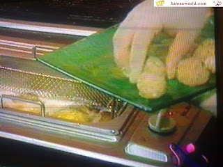 ونقلبهم ثم نضع بيضة مضروبة ونخلطها كويس ثم نكورها ونحمرها فى الزيت