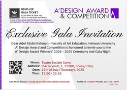 استضافت أكاديمية جوائز التصميم والمسابقات العالمية International A’ Design Award & Competition بمدينة كومو الإيطالية، الخميس 17 يوليو سفراء الفن التشكيلى أ.د. عادل عبد الرحمن و أ.د. علا يوسف، حيث تمت دعوتهما ( دعوة كبار الشخصيات VIP ) كضيوف شرف للمشاركة في حفل توزيع جوائز التصميم للفائزين في المجالات المختلفة على مستوى العالم، وقد استقبلهما بحفاوة على الريد كاربت البروفيسور الإيطالى والمصمم العالمى د. " أونور كوبانلى " رئيس الأكاديمية ، والبروفيسور " ماكبال باياتوفا " نائب الرئيس ، وتمت دعوتهما إلى حفل عشاء فاخر مصحوبا بعزف مقطوعات من الموسيقى العالمية ، وقد قام الزوجان بالتوقيع على أهم شهادات الفائزين بالجوائز العالمية ، ومنها شهادة مصمم العام 2025 التي فاز بها المصمم الإيطالى" آندري كابيوتو ".