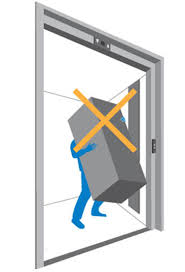 - ممنوع الطرق على الابواب او هزها لأنه لا يؤدى الى تعجيل الاستدعاء فالامر يتعلق فقط بضغطك على زر الطلب وانتظار نظام التحكم فهو من يقرر الى اى طابق سيتوجه المصعد