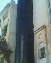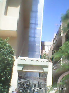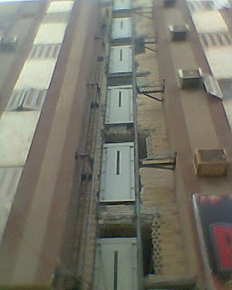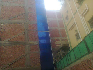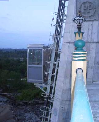 او ان يكون المصعد داخل برج حديدى او خرسانى ملحق بالمبنى من الخارجسواء تم تغطيته بزجاج شفاف او ملون او بزجاج بلاستيكى او تم تشطيبه باعمال المحارة والدهان