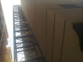 هذا وفى احيان اخرى يتم تثبيت مسار حركه المصعد الخارجى مباشرة بالمبنى من الخارج بدون وجود برج حديدى او خرسانى لهذا الغرض