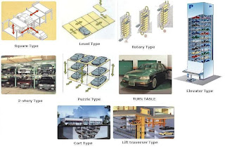 نأتى بعد ذلك الى توضيح مجمل لاخر انواع هذا القسم وهو المبانى المستخدمه لأغراض تخزين او تجريش السيارات ويمكن اجمالهم فى نوعين وهما مصعد لنقل الاشخاص بين ادوار الجراش ومصعد آخر لنقل السيارات بين الادوار لتخزينها فى مكانها المخصوص لها
