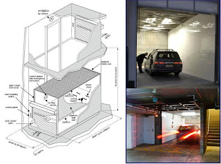 من المؤكد ان تلك السياره سيقودها شخص الى هذه البنايه اويذهب لاحضارها منها فيلزم وجود مصعد مناسب للاشخاص او ربما اكثر من مصعد لتوفير الوقت