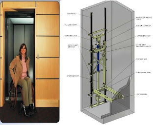 - واول هذه الانواع هو مصعد لكرسى متحرك لعبور درجات مدخل المبنى الى الداخل فى الدور الارضى او الى باقى الادوار كما فى حالات البرج الخارجى للمصعد ان وجد فتحه باب تنفذ الى الشارع بالدور الارضى وهو مصعد مخصص لمستخدمى الكراسى المتحركه وكبار السن