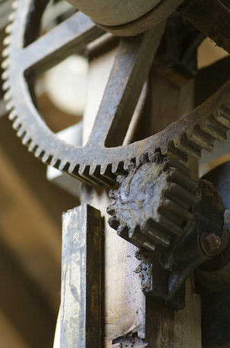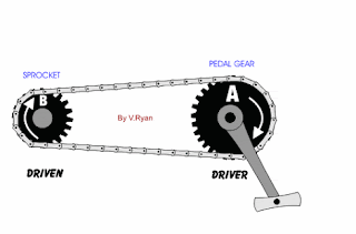 بقى لنا مقدار الطاقه البدنيه وطبيعه التواجد بجوار المحرك فعند التعامل مع التروس من حيث قوة التحريك وكذا السرعه افترض وجود ترس كبير واخر صغير عند تحريك الترس الكبير والغير مقترن بحمل ولكنه متداخلا مع الترس الصغير الذى اقترن بالحمل سيكون مقدار الطاقه اللازمه لتحريك الحمل يتناقص بزياده قطر الترس الاول وتزيد السرعه بزياده قطر الترس الاول فيما يشبه نظام تشغيل الدراجه الهوائيه بواسطه المسننات وناقل الحركه (الجنزير)