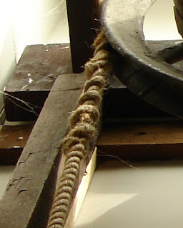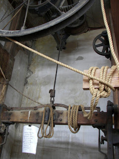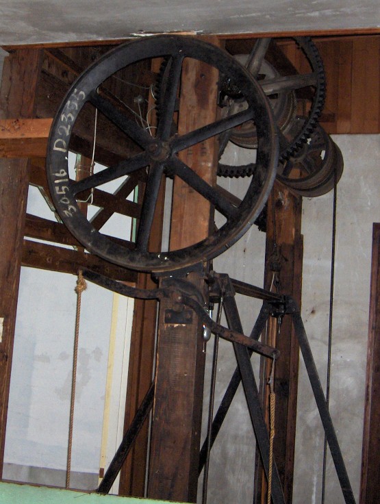 | استخدام طارة كبيرة لتحريكها بواسطه حبل فى قيادة المصعد |