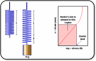 | قانون هوك لاستطالة الزنبركات تحت تأثير الوزن |