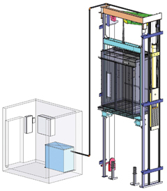عادة ما توجد الوحدة الهيدروليكية بجوار البئر فى الاسفل وتوجد الاسطوانة داخل البئر وتعتبر المكونات الرئيسية لهذه الوحده هى صندوق الزيت والمحرك والمضخة والصمامات وهذه هى المكونات التى سنتناول ايضاح اسس تصميمها واختيارها بما يتناسب مع عملها فى المصعد