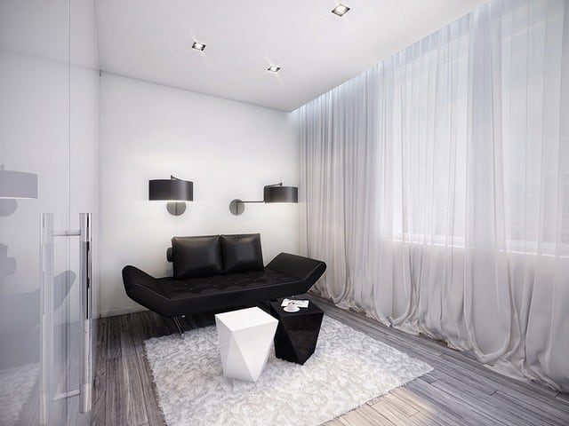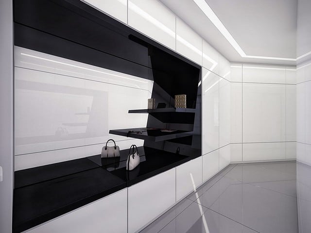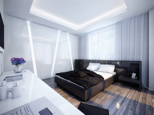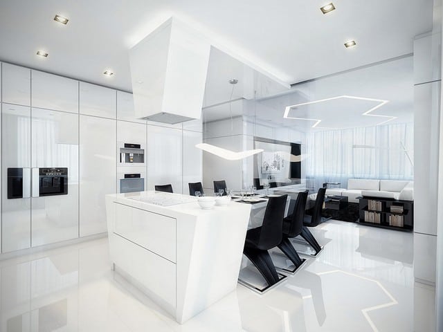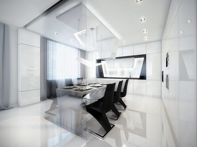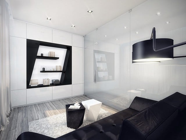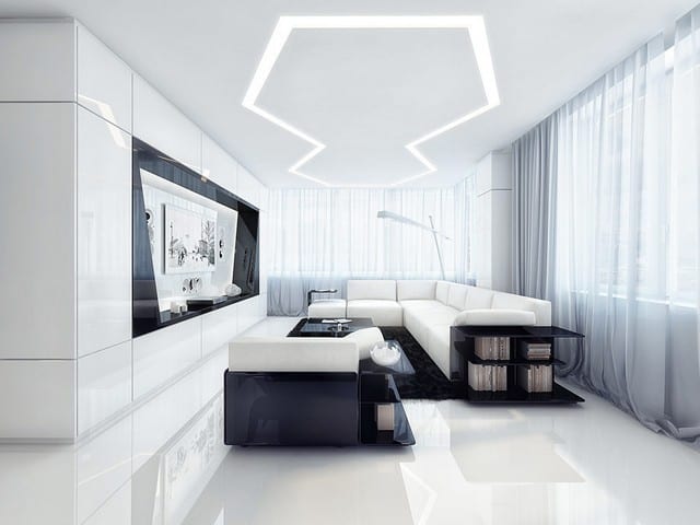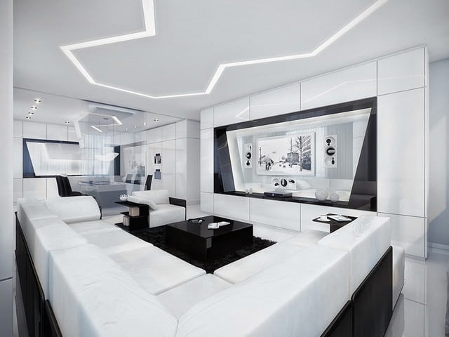 شقة مستقبلية،أبيض وأسود من قبل Geometrix، يكون خيارا لبعض الذين يحبون ألاساليب المستقبلية.