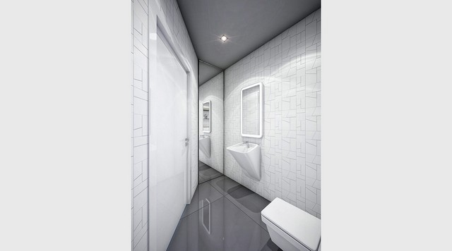 تناقضات بيضاء نقية مع بعض السواد . تركيب مصابيح في السقوف وألواح الجدران، شكل متعرج في كثير من الأحيان لخلق الوهم بأنهم داخل سفينة الفضاء.