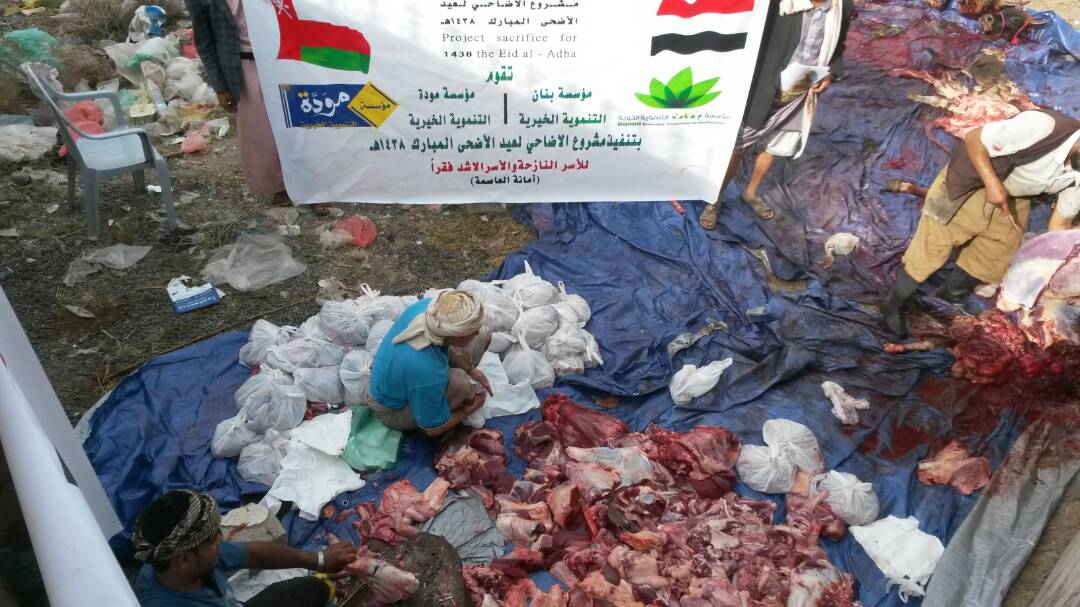 بتنفيذ المرحلة الثانية من مشروع الأضاحي والذي كان بدعم من جمعية الأستقامة الخيرية الأسلامية العالمية بسلطنة عمان الشقيقة حيث وقد أستهدف المشروع 320 أسرة نازحة وفقيرة في مناطق أشد فقرا وحاجه بمديرية الحارث ( الرحبه __ وادي احمد __ قرية القابل ) ومديرية السبعين ( منطقة عطان ) ومديريتي الثورة وشعوب بامانة العاصمة