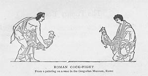 Two male Cocks locked in mortal combat, paintings, murals and carvings have been found as early as the 1st Dynasty in Egypt. This was the Ancient ESPN of the Rock age men, watching nature's machismo dance with death and ever throbbing libido.