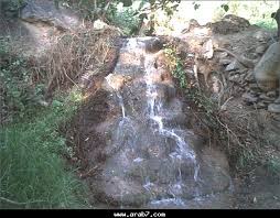 و يمتد مجرى العين على مسافة الخمسين مترا قبل الوصول إلى بداية المزارع، وقد قام الأهالي بعمل قناة ذات منسوب متوازن يحافظ على انسياب الماء بشكل متوازن. وقبل الوصول للمزارع هناك شلال صغير بارتفاع المتر والنصف يضفي على المكان رونقا خاصا وطبيعة ساحرة. كما أن الأهالي قد قاموا ببناء «مسطبة» من الحجارة تمر المياه الجارية من تحتها في تصميم معماري فني رائع. هذه المسطبة كانت تستخدم من الأهالي للالتقاء والاجتماع لحل مشاكل المزارع وتوزيع المياه ومشاكل القرية ككل. ولتوزيع مياه العين على المزارع قانون خاص .