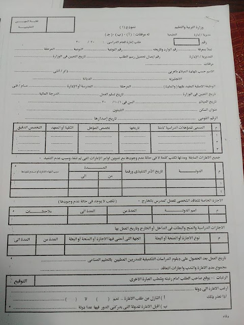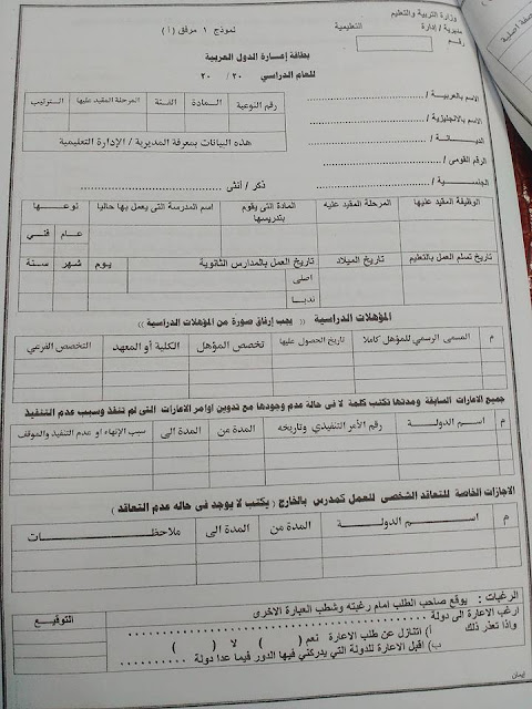 استمارة التقدم للاعارة لدول الخليح والدول العربيه "مدرسين ومدرسات "2019-2020