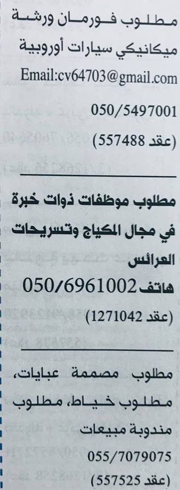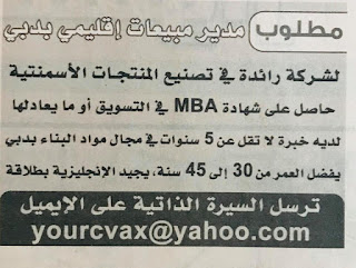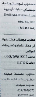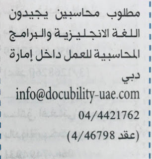مطلوب للمقيمين فى الامارات محاسبين مترجم مهندسين سكرتارية بائعين مندوبين موظفات