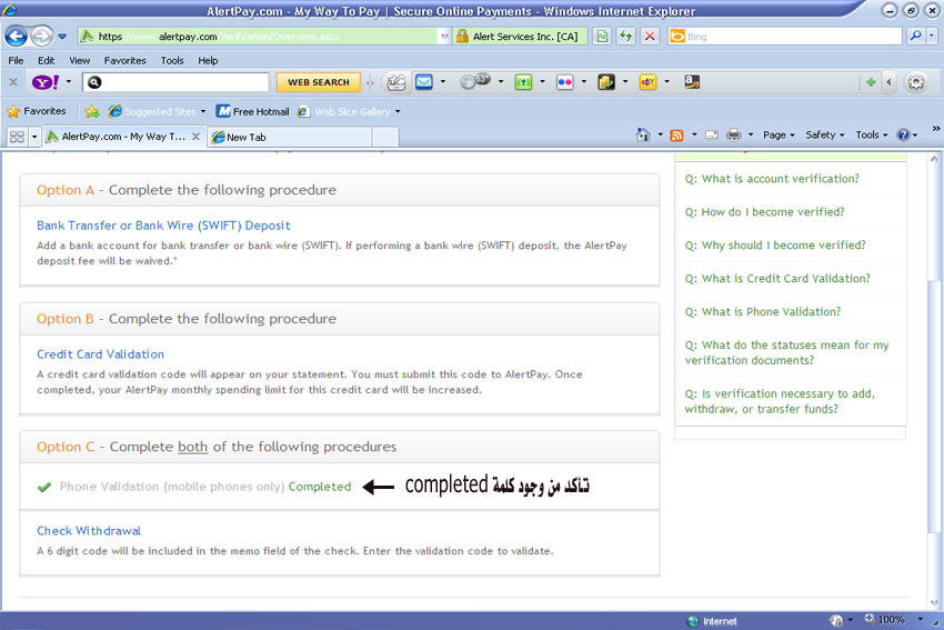 11 - سوف تظهر لك رسالة أنه قد تم تفعيل حسابك وهى آخر خطوة وبهذا أصبح لديك حساب فى بنك Alertpay