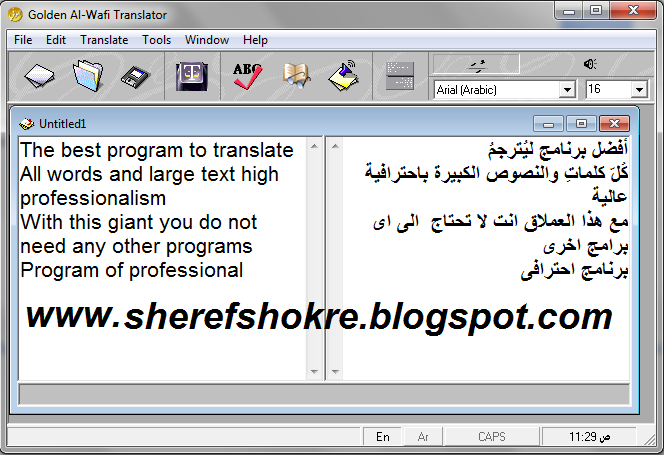 افضل برنامج يترجم الكلمات والنصوص باحترافيه عالية Golden.AlWafi.Translator الوافى الذهبى برنامج انت معه فى غنى عن اى برنامج ترجمه اخر يترجم اليك النصوص الصعبه والثقيله من عربى الى انجليزى والعكس وبه ايضا لغات كثيره جدا يحتى على الاقل فيما يقرب من 34 لغه اخرى يستخدمه معظم المتعاملين على الانترنت والطلبه والمكاتب لترجمة جميع النصوص فى شتى المجالات