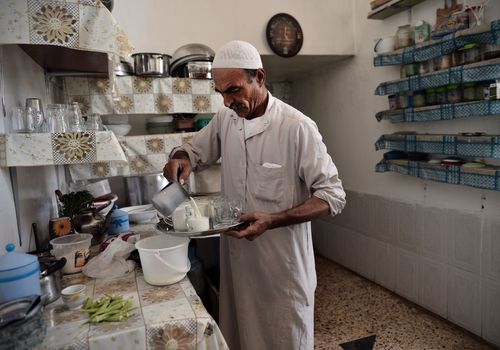 أحمد الزهرة زوج فاطمة يعد الحليب لمقاتلي الجيش الحر والمنشقين الذين لجأو لمنزله