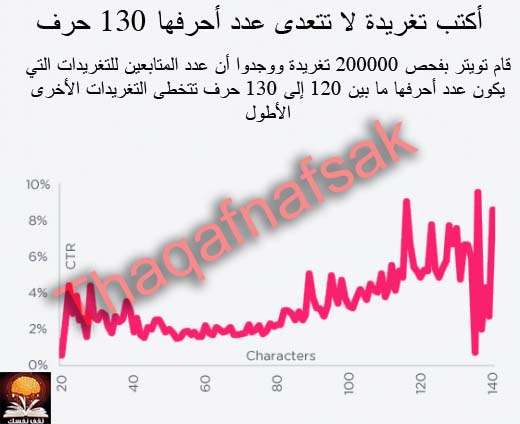 3. تويتة اقل من 100 حرف تحصد 17% زيادة في عدد المتابعين في هذه النقطة يتفق كل من الفيس بوك وتويتر بحيث كلما قل عدد حروف الجملة المنشورة كلما جمعت نسب مشاهدة اكبر