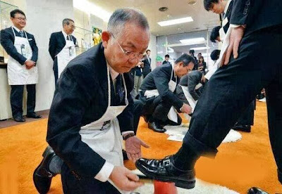 يمسحون أحذية موظفيهم الجدد كنوع من رياضة كسر التعالي والغرور