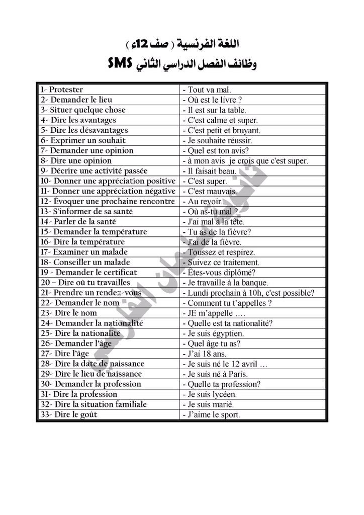 مراجعة مادة #اللغة_الفرنسية ١٢ #فرنسي_١٢_ك٢ #اختبارات #امتحانات_الثانوية_العامة