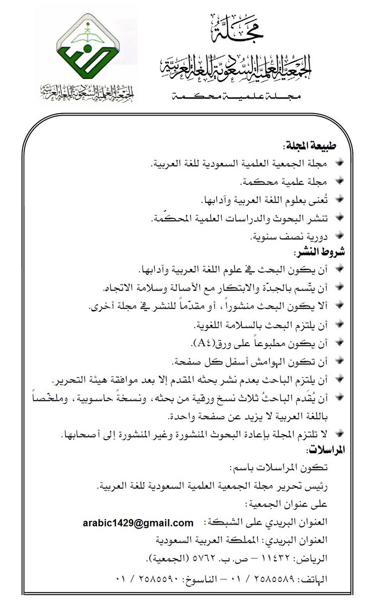 متطلبات النشر في المجلة العلمية للجمعية العلمية السعودية للغة العربية.