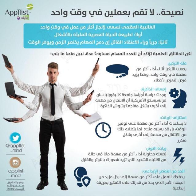 #انفوجرافيك لا تقم بعملين في وقت واحد #بيئة_العمل