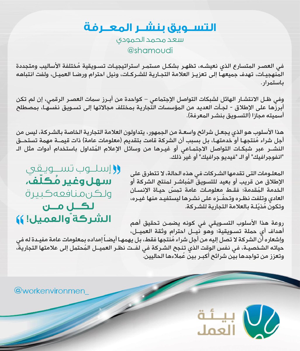 أحد الشركات مارست مفهوم"التسويق بنشر المعرفة" وكانت النتائج مبهرة: http://cutt.us/E5Zq #بيئة_العمل Via @noradreams