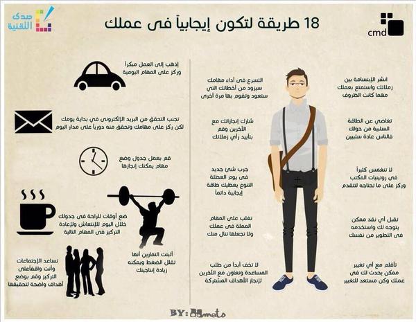 #انفوجرافيك 18 طريقة لتكون ايجابيا في عملك #بيئة_العمل Via @Rugati