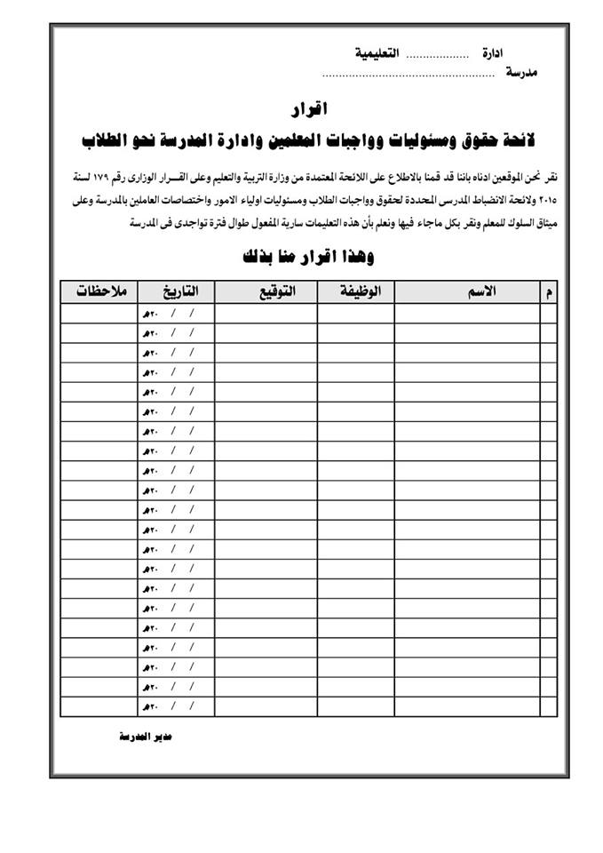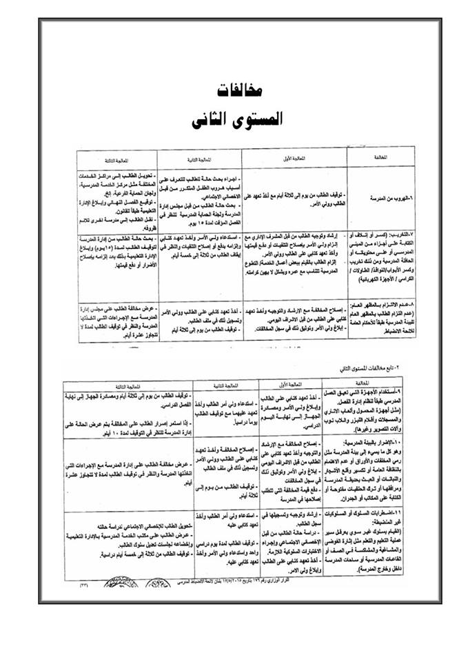 للسجلات الخاصة بتنفيذ لائحة الانضباط المدرسى