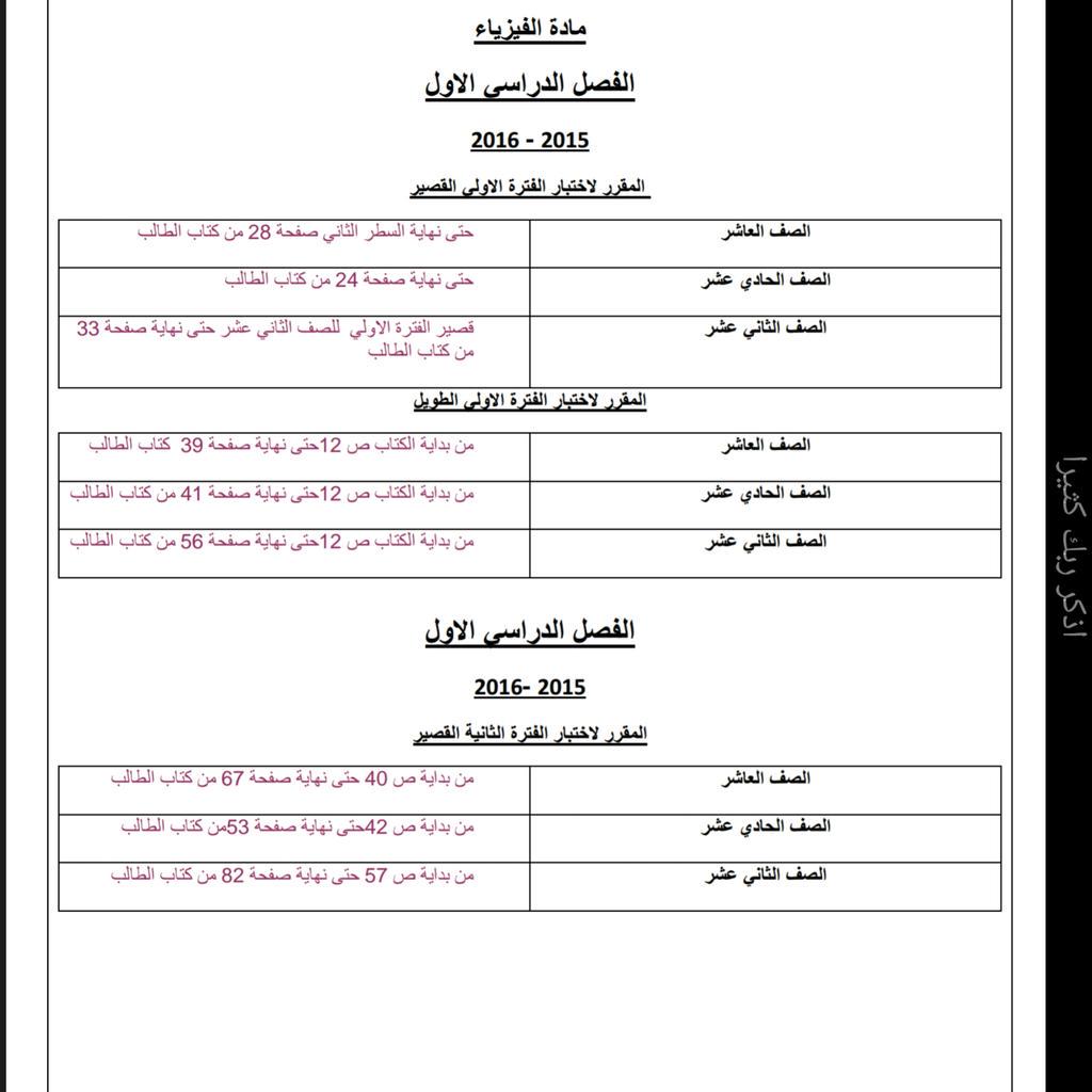 - المحتوى العلمي لاختبار الفيزياء للصفوف 10 و11ع و12ع الفترة الأولى والفترة الثانية. #اختبارات #عاشر #11ع #12ع #فيزياء