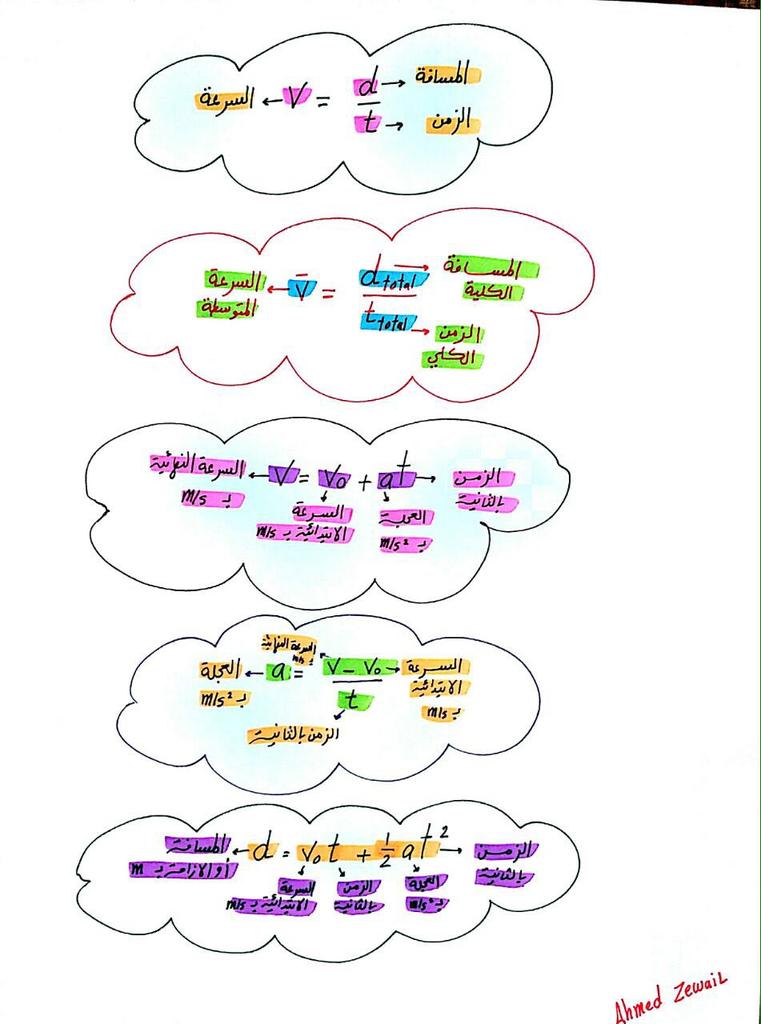 قوانين معادلات الحركة مهم جدا جدا حفظها. ريتويت للحلوين اللي اختبارهم الخميس.