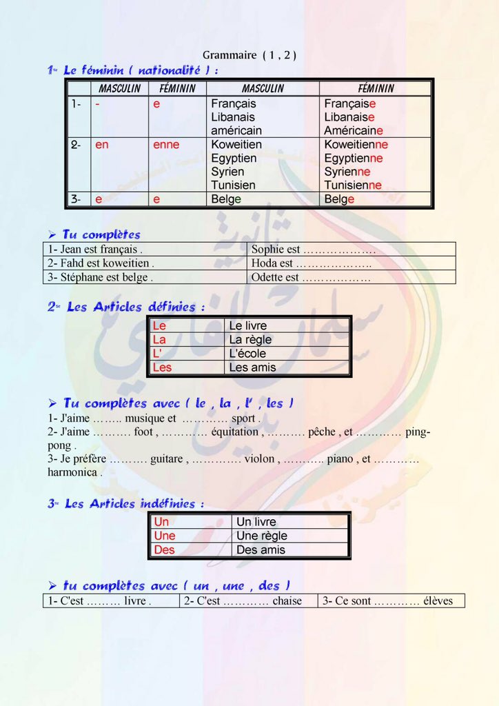 #اللغة_الفرنسية للصف 11 الفترة الأولى