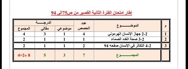 #محتوى المطلوب في امتحان الفترة الثانية قصير الصف ١١ع أحياء