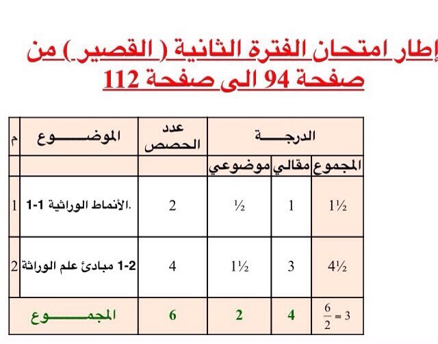 #محتوى المطلوب في امتحان الفترة الثانية قصير الصف ١٠ أحياء #احياء10ف2