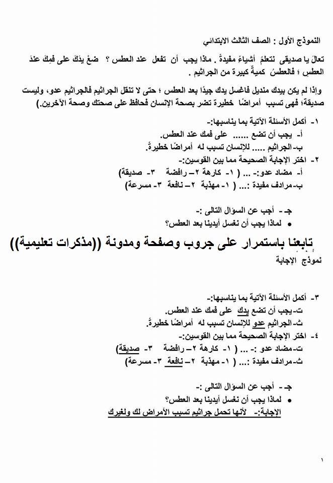 نماذج امتحانات علي المنهج الجديد طبق للمواصفات الجديدة نرجو التثبيت والدعاء