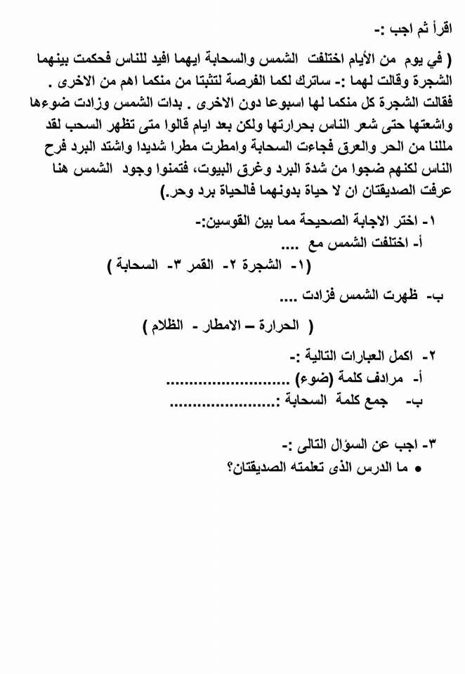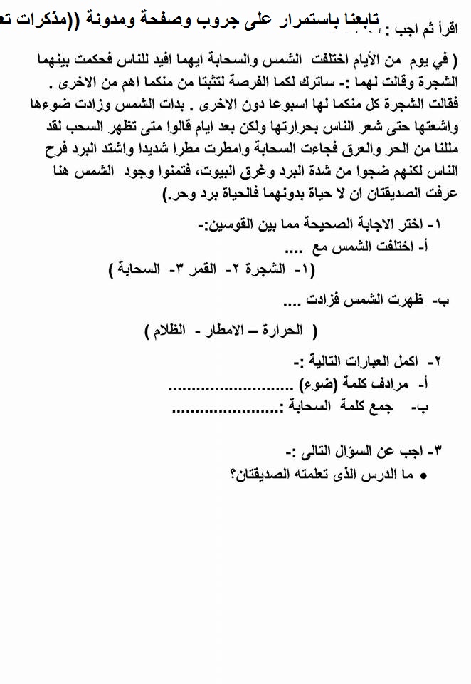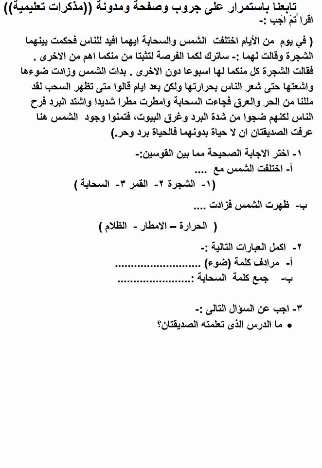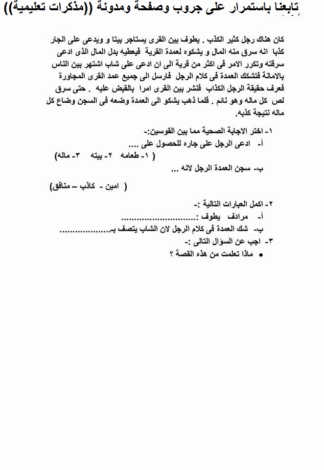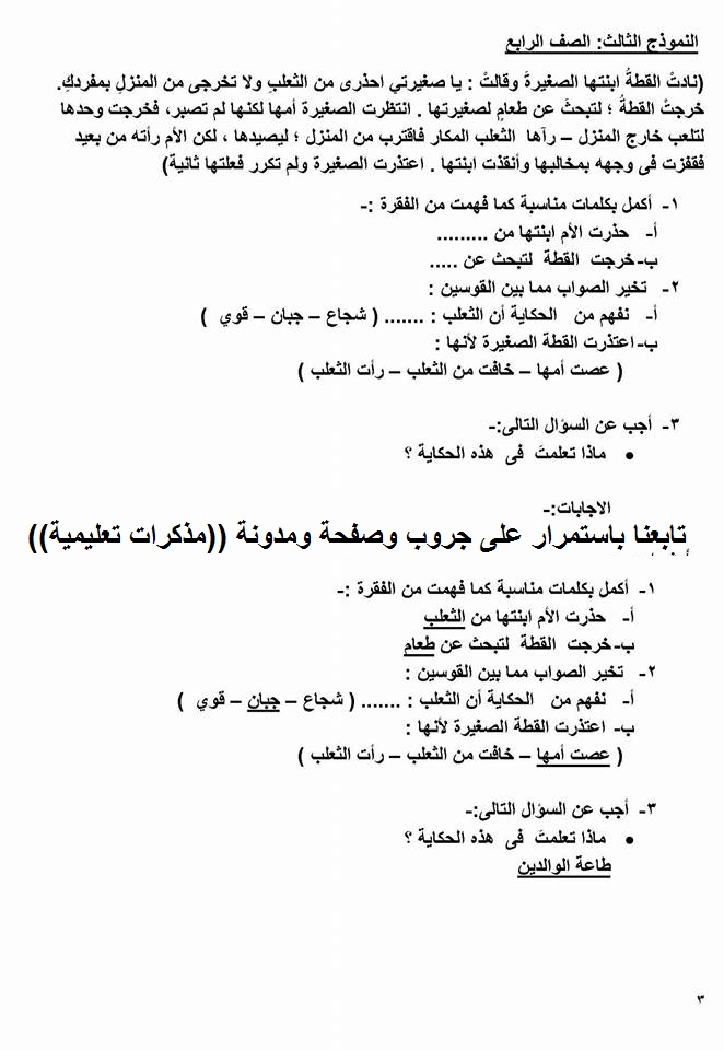 قرائية : مراجعه ليله الامتحان على السؤال الخارجى من القراءة المتحررة المحتوى للتدريب عليها للصفين الثالث والرابع الابتدائي لغه عربيه