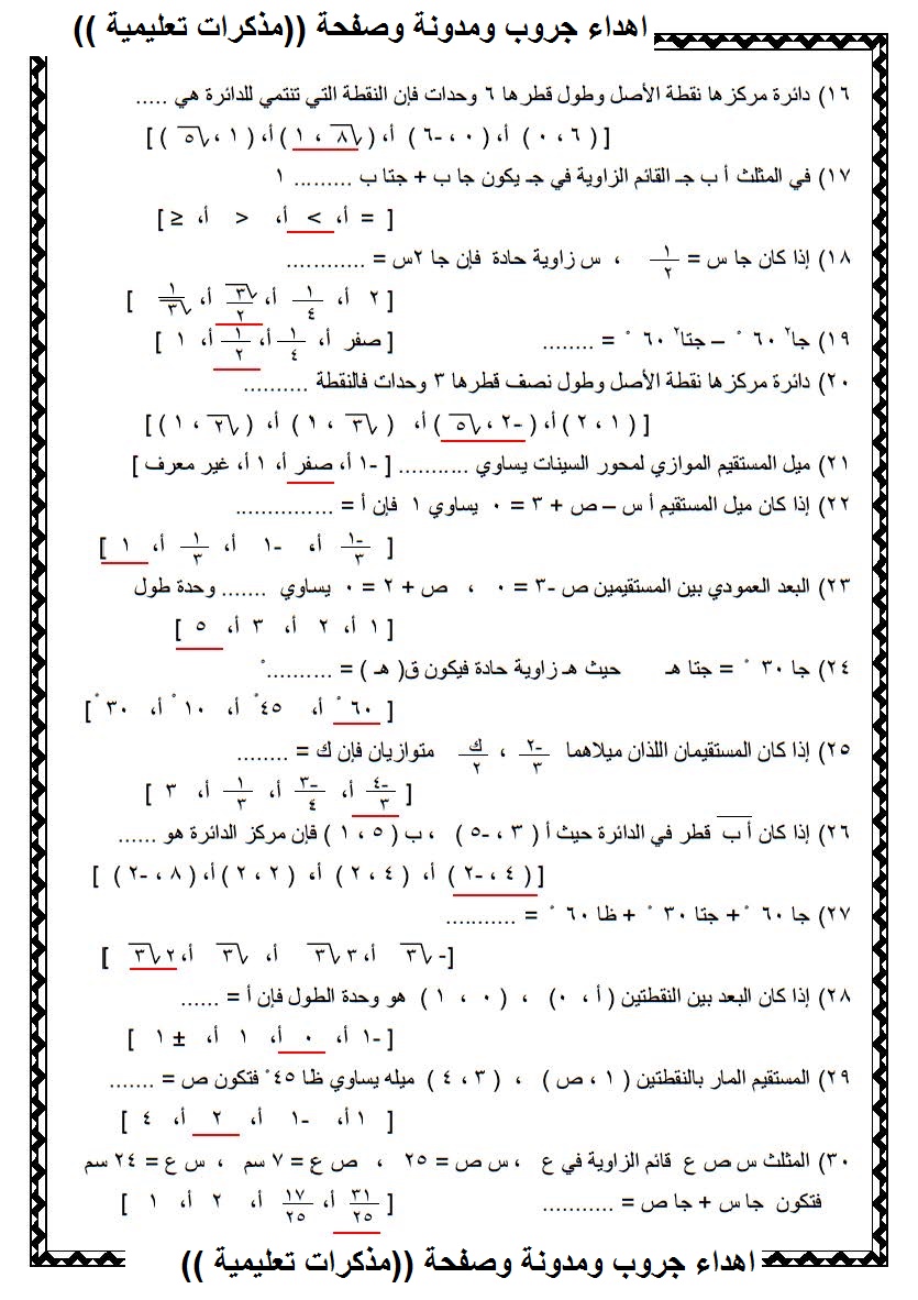 مراجعة ليلة الامتحان فى حساب مثلثات للصف الثاني الثانوي